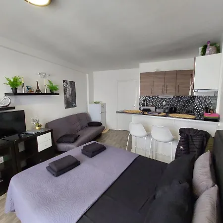 The apartment offers guests the convenience of self-catering facilities, including a fridge, oven, and a kitchenware. Orly airport is also located 13 miles from the property.